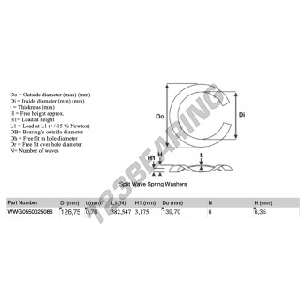 La Arandela Elástica Ondulada Partida con la referencia SWSW-139.70-126.75-0.76-6 tiene un diámetro interior de 126.75 mm y un espesor de 0.76 mm. Está fabricado con el material ACERO.