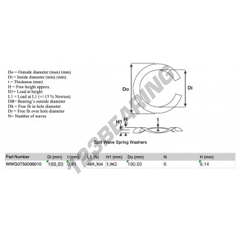 La Arandela Elástica Ondulada Partida con la referencia SWSW-190.50-169.93-0.81-6 tiene un diámetro interior de 169.93 mm y un espesor de 0.81 mm. Está fabricado con el material ACERO.