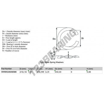 La Arandela Elástica Ondulada Partida con la referencia SWSW-240-219.16-0.81-9 tiene un diámetro interior de 219.16 mm y un espesor de 0.81 mm. Está fabricado con el material ACERO.