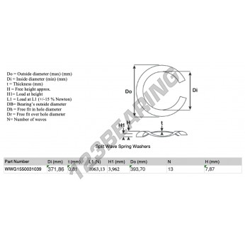 La Arandela Elástica Ondulada Partida con la referencia SWSW-393.70-371.86-0.81-13 tiene un diámetro interior de 371.86 mm y un espesor de 0.81 mm. Está fabricado con el material ACERO.