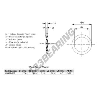 La Arandela Elásticas Ondulada con la referencia WSW-12.5-8.89-0.18 tiene un diámetro interior de 8.89 mm y un espesor de 0.18 mm. Está fabricado con el material ACERO.