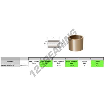 El Casquillo Bronce conocido por la referencia BAI25.400-34.925-25.400 Genérico tiene un diámetro interior de 25.4 mm, un diámetro exterior de 34.925 mm y una longitud de 25.4 mm. Está hecho de .