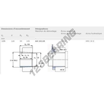 El Manguito, conocido como AH24128-SKF SKF, tiene un diámetro interior de 135 mm, un diámetro exterior de 140 mm y un espesor de 99 mm.