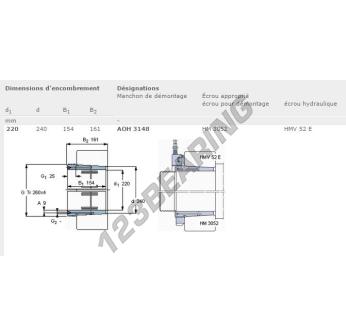 El Manguito, conocido como AOH3148-SKF SKF, tiene un diámetro interior de 220 mm, un diámetro exterior de 240 mm y un espesor de 154 mm.