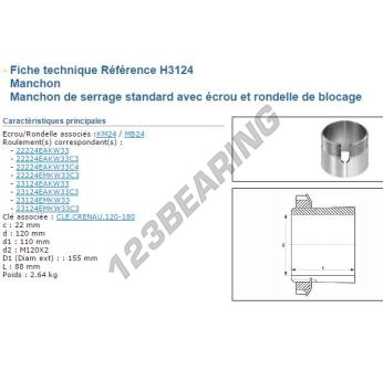 El Manguito, conocido como H3124-SNR SNR, tiene un diámetro interior de 110 mm, un diámetro exterior de 155 mm y un espesor de 120 mm.