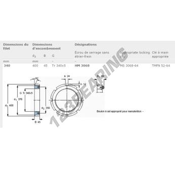 Esta tuerca tiene un diámetro interior de 340mm, un diámetro exterior de 400mm y un grosor de 45mm.
