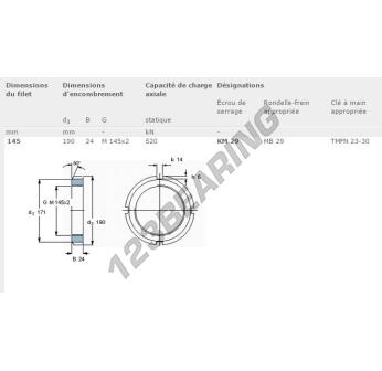 Esta tuerca tiene un diámetro interior de 145mm, un diámetro exterior de 190mm y un grosor de 24mm.