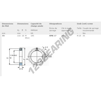 Esta tuerca tiene un diámetro interior de 85mm, un diámetro exterior de 110mm y un grosor de 18mm.