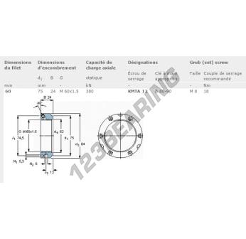 Esta tuerca tiene un diámetro interior de 60mm, un diámetro exterior de 75mm y un grosor de 24mm.