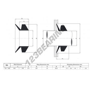La Junta V-ring con la referencia VS190-NBR tiene un diámetro interior de mm y un espesor de mm. Está fabricado con el material NBR.