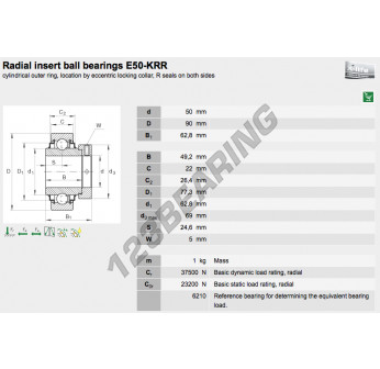 El Accesorio De Cojinete E50-KRR-INA INA mide 50 mm de diámetro interior, 90 mm de diámetro exterior y 62.8 mm de espesor. Está fabricado en .