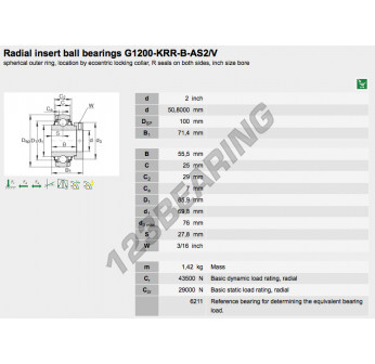 Roulement Auto-aligneur G1200-KRR-B-AS2-V-INA, Diámetro interior 50.8 mm, Diámetro exterior 100 mm, Espesor 71.4 mm