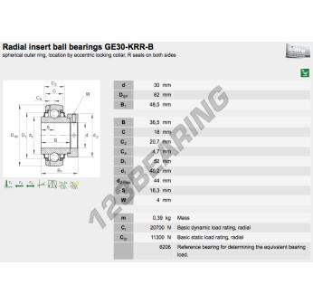 El Accesorio De Cojinete GE30-XL-KRR-B-INA INA mide 30 mm de diámetro interior, 62 mm de diámetro exterior y 48.5 mm de espesor. Está fabricado en .