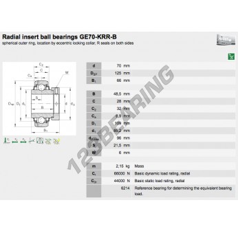 El Accesorio De Cojinete GE70-KRR-B-INA INA mide 70 mm de diámetro interior, 125 mm de diámetro exterior y 66 mm de espesor. Está fabricado en .