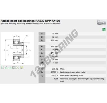 El Accesorio De Cojinete RAE30-XL-NPP-FA106-INA INA mide 30 mm de diámetro interior, 62 mm de diámetro exterior y 35.8 mm de espesor. Está fabricado en .