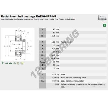El Accesorio De Cojinete RAE40-XL-NPP-NR-INA INA mide 40 mm de diámetro interior, 80 mm de diámetro exterior y 43.7 mm de espesor. Está fabricado en .