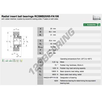 El Accesorio De Cojinete RCSMB20-65-XL-FA106-INA INA mide 20 mm de diámetro interior, 65.1 mm de diámetro exterior y 31 mm de espesor. Está fabricado en .