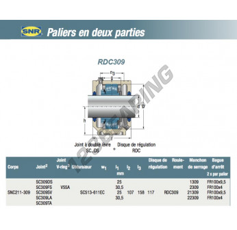 El Accesorio De Cojinete RDC309-SNR SNR mide mm de diámetro interior, mm de diámetro exterior y mm de espesor. Está fabricado en .