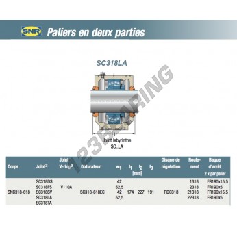 El Accesorio De Cojinete SC318LA-SNR SNR mide mm de diámetro interior, mm de diámetro exterior y mm de espesor. Está fabricado en .