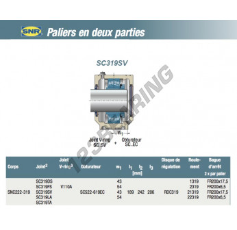 El Accesorio De Cojinete SC319SV-SNR SNR mide mm de diámetro interior, mm de diámetro exterior y mm de espesor. Está fabricado en .