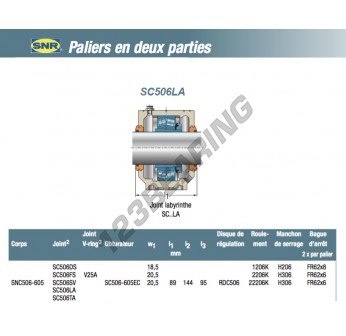 El Accesorio De Cojinete SC506LA-SNR SNR mide mm de diámetro interior, mm de diámetro exterior y mm de espesor. Está fabricado en .