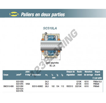 El Accesorio De Cojinete SC510LA-SNR SNR mide mm de diámetro interior, mm de diámetro exterior y mm de espesor. Está fabricado en .