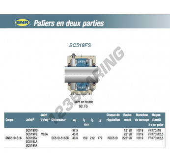 El Accesorio De Cojinete SC519FS-SNR SNR mide mm de diámetro interior, mm de diámetro exterior y mm de espesor. Está fabricado en .