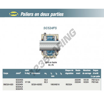 El Accesorio De Cojinete SC524FS-SNR SNR mide mm de diámetro interior, mm de diámetro exterior y mm de espesor. Está fabricado en .