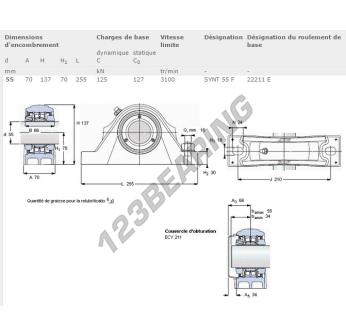 El Cojinete Hierro Fundido - 2 Fijaciones conocido como SYNT55F-SKF SKF tiene un diámetro de eje de 0 mm y un espaciamiento de fijación de mm. Esta referencia se produce en hierro fundido y el tipo de fijación es .