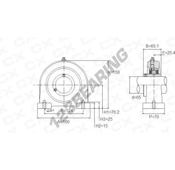 El Cojinete Hierro Fundido - 2 Fijaciones conocido como UCPA213 Genérico tiene un diámetro de eje de 65 mm y un espaciamiento de fijación de 124 mm. Esta referencia se produce en hierro fundido y el tipo de fijación es .