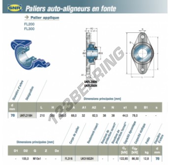 El Cojinete Hierro Fundido - 2 Fijaciones conocido como UKFL316H-SNR SNR tiene un diámetro de eje de 70 mm y un espaciamiento de fijación de 285 mm. Esta referencia se produce en hierro fundido y el tipo de fijación es .