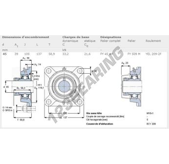 El Cojinete Hierro Fundido - 4 Fijaciones conocido como FY45-WF-SKF SKF tiene un diámetro de eje de 45 mm y un espaciamiento de fijación de 105 mm. Esta referencia se produce en hierro fundido y el tipo de fijación es .