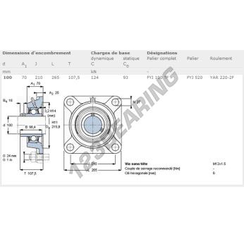 El Cojinete Hierro Fundido - 4 Fijaciones conocido como FYJ100TF-SKF SKF tiene un diámetro de eje de 100 mm y un espaciamiento de fijación de 210 mm. Esta referencia se produce en hierro fundido y el tipo de fijación es .