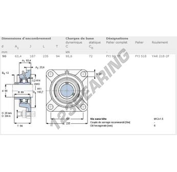 El Cojinete Hierro Fundido - 4 Fijaciones conocido como FYJ90-TF-SKF SKF tiene un diámetro de eje de 90 mm y un espaciamiento de fijación de 187 mm. Esta referencia se produce en hierro fundido y el tipo de fijación es .