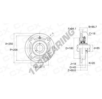 El Cojinete Hierro Fundido - 4 Fijaciones conocido como UCFC217 Genérico tiene un diámetro de eje de 85 mm y un espaciamiento de fijación de 147.1 mm. Esta referencia se produce en hierro fundido y el tipo de fijación es .