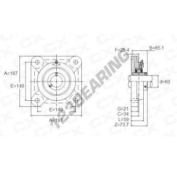 El Cojinete Hierro Fundido - 4 Fijaciones conocido como UCFX12 Genérico tiene un diámetro de eje de 60 mm y un espaciamiento de fijación de 149 mm. Esta referencia se produce en hierro fundido y el tipo de fijación es .