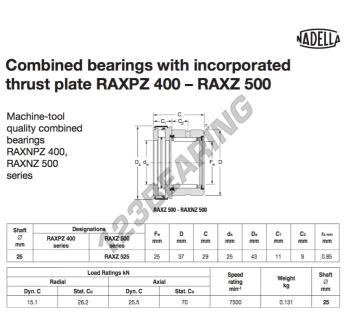 El Otro Rodamiento, conocido como RAXZ525-NADELLA NADELLA, tiene un diámetro interior de 25 mm, un diámetro exterior de 43 mm y un espesor de 29 mm.