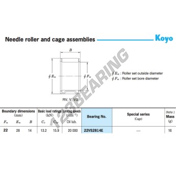 El Rodamiento De Agujas, conocido como 22VS2814E-JTEKT JTEKT, tiene un diámetro interior de 22 mm, un diámetro exterior de 28 mm y un espesor de 14 mm.