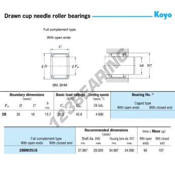 El Rodamiento De Agujas, conocido como 28BM3516-JTEKT JTEKT, tiene un diámetro interior de 28 mm, un diámetro exterior de 35 mm y un espesor de 16 mm.
