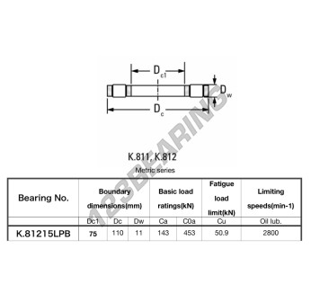 El Rodamiento De Agujas, conocido como K.81215LPB-JTEKT JTEKT, tiene un diámetro interior de 75 mm, un diámetro exterior de 110 mm y un espesor de 11 mm.