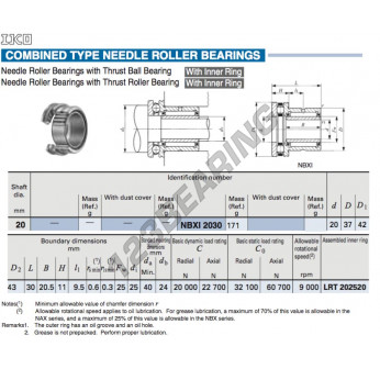 El Rodamiento De Agujas, conocido como NBXI2030-IKO IKO, tiene un diámetro interior de 20 mm, un diámetro exterior de 37 mm y un espesor de 30 mm.