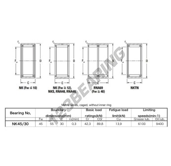 El Rodamiento De Agujas, conocido como NK4530-JTEKT JTEKT, tiene un diámetro interior de 45 mm, un diámetro exterior de 55 mm y un espesor de 30 mm.