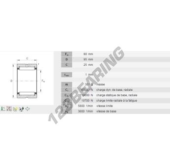 El Rodamiento De Agujas, conocido como NK80-25-INA INA, tiene un diámetro interior de 80 mm, un diámetro exterior de 95 mm y un espesor de 25 mm.