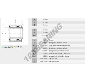 El Rodamiento De Agujas, conocido como NKIB5908-INA INA, tiene un diámetro interior de 40 mm, un diámetro exterior de 62 mm y un espesor de 34 mm.