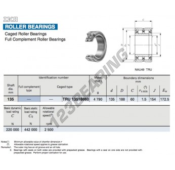 El Rodamiento De Agujas, conocido como TRU13518860-IKO IKO, tiene un diámetro interior de 135 mm, un diámetro exterior de 188 mm y un espesor de 60 mm.