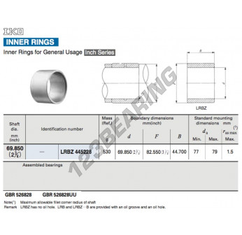 El Aro Interior conocido por la referencia LRBZ445228-IKO IKO tiene un diámetro interior de 69.85 mm, un diámetro exterior de 82.55 mm y una longitud de 44.7 mm. Está hecho de .