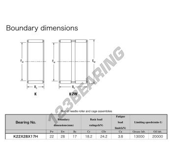 La Caja De Agujas, conocida como K22-28-17-H-JTEKT JTEKT, tiene un diámetro interior de 22 mm, un diámetro exterior de 28 mm y un espesor de 17 mm.