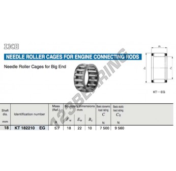 La Caja De Agujas, conocida como KT182210-EGB2-IKO IKO, tiene un diámetro interior de 18 mm, un diámetro exterior de 22 mm y un espesor de 10 mm.