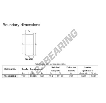 La Caja De Agujas, conocida como WJ-485424-JTEKT JTEKT, tiene un diámetro interior de 76.2 mm, un diámetro exterior de 85.725 mm y un espesor de 38.1 mm.