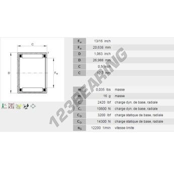 El Buje De Agujas, conocido como BCE138-INA INA, tiene un diámetro interior de 20.64 mm, un diámetro exterior de 26.99 mm y un espesor de 12.7 mm.